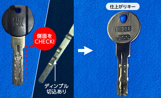 鍵の溝や突起の位置、大きさ、深さ等が掲載画像と異なる場合は作製できない場合もございますので、作製可否は実物を拝見して判断させていただきます。