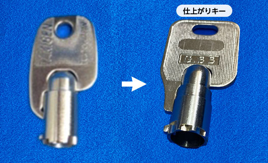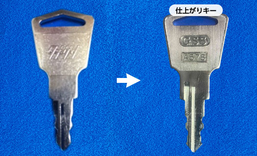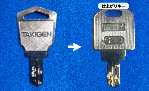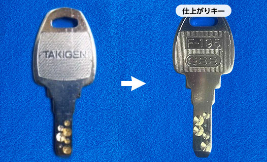 荷台の鍵メーカー タキゲン[TAKIGEN] トラック荷台の合鍵作製は、店舗にご来店いただけるお客様限定のサービスですので、宅配便往復合鍵作製サービスの受注対象外になります。 また、当店では、キーナンバーから合鍵を作製する事はできません。 TKG-1 ディンプルキーA 20分 2,200円 TKG-2 ディンプルキーB 20分 2,200円 TKG-3 両面カットキー 10分 880円 TKG-4 エースキー(丸鍵) 30分 3,300円
