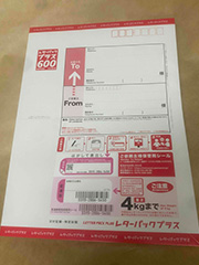 レターパックプラスで返送を希望される場合は2枚購入していただき、1枚を返送用封筒として2つ折りにして荷物と一緒に送ってください。